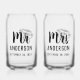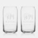 Custom beer glass can set with personalised last name, wedding date, and big silver diamond. The "Mr" & "Mrs" are in brush script with the last name and date in sans-serif typography. Click 'Personalise' to edit the last name and date to see how it looks.
