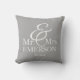 Add last name and "Established" or wedding date to the front of this grey and white "Mr & Mrs" decorative pillow.