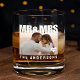 Mr. and Mrs. photo whiskey glass with heart anniversary year and family name text. Great for newlywed couple or a wedding anniversary.