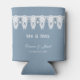 Mr & Mrs Rustic Dusty Blue White Cow Skull Wedding Can Cooler