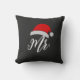 ALT-Text: Mr and Mrs Santa hat design throw pillow for Christmas couples and holiday home decor.