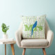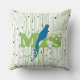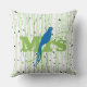 Mr Mrs Spring Green and Royal Blue Birch Tree Bird Cushion