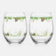 Mr. & Mrs. Tropical Leaves Script Wedding Gift Stemless Wine Glass
