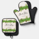 Mr. & Mrs. Tropical Leaves Script Wedding Oven Mitt & Pot Holder Set