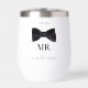 An elegant black and white wedding themed design perfect for newlyweds. The wine tumbler is designed in black and white with a stylish black bow tie for the "Mr." and a beautiful sparkling diamond for the "Mrs." The established date is located on top which can be customised to your wedding date or a memorable date in your lives. An elegant script font is used for the bride's and groom's names located to the bottom. Customise the text and make it your own.