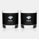 An elegant black and white wedding themed design perfect for newlyweds. The wine tumbler is designed in black and white with a stylish black bow tie for the "Mr." and a beautiful sparkling diamond for the "Mrs." The established date is located on top which can be customised to your wedding date or a memorable date in your lives. An elegant script font is used for the bride's and groom's names located to the bottom. Customise the text and make it your own.