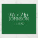 A bold colour with chic fonts make a statement piece for a reception favour. A simple Mr. and Mrs. bride and groom name with a solid colour background.