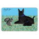 My signature art - Mr Squirrel in heavy conversation with a Black German Shepherd and his pup on this flexible magnet.