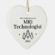 First Christmas as an MRI technologist heart ornament for a new job after medical school graduation. Elegant porcelain ceramic holiday ornaments in white with black lettering. Featuring Christmas trees and stars.