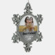 Mrs and Mrs Silver Damask Photo Snowflake Pewter Christmas Ornament