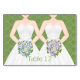 Mrs and Mrs two brides in wedding dresses holding floral bouquets - Wedding table cards gay / lesbian pride wedding / civil ceremony table setting cards. designer gay wedding placements from Ricaso