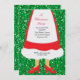 This is an adorable Christmas party invitation. It has a green glitter background. In the centre is a large picture of Mrs. Claus's red dress with with her white apron. She's wearing red shoes Personalise with party information on her apron. Check out the many other designs and products we have in Christmas invitations. © JW Illustrations