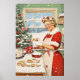 In a cosy, snow-covered kitchen, Mrs. Claus is captured in the midst of holiday baking. Dressed in a festive red dress with fur-trimmed sleeves, and a matching apron, she smiles warmly as she prepares a fresh batch of cookies. The scene is filled with Christmas cheer, complete with a beautifully decorated tree adorned with candy canes and red ornaments, while snow gently falls outside the window, adding to the magical atmosphere of the season.