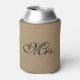 "Mrs." in script for the bride / for her faux jute linen burlap rustic chic shabby country chic wedding couple beer or soda can drink cooler.
