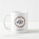 Coffee, The best way to start your day! "Mrs." in a trendy script font with a floral wreath. Personalise the coffee mug with your name.