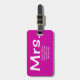 Mrs. Luggage Tags are printed with Mrs. across the front in white letters, with any 4 lines of personalisation. Include your name, address, phone number ... you choose the details! Personalisation will be printed in white. Features white stripes on the back. Background colour can be changed. Travel with confidence, knowing any misplaced belongings will return safely - perfect for suitcases, garment bags and more! Also comes in a version for the Mr.