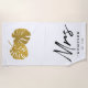 A beautiful modern gold Monstera leaf design with text "Mrs" beach towel that can be customised to your surname and established date. An ideal gift for newlyweds, bridal showers, wedding gifts. Customise the text and make it your own.