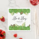 A simple minimalist tropical leaves and black script text "Mr & Mrs" wedding napkin that can be customised to your surname and wedding date. Ideal wedding decor to a tropical themed wedding.