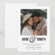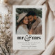 This holiday card is designed for newlyweds celebrating their first married Christmas, blending modern simplicity with seasonal charm. It features a square photo that you can upload to showcase your favourite moment together. The phrase "mr & mrs" in a bold typographical design is accompanied by a delicate heart next to it. Beneath it, your personalised holiday wishes are elegantly displayed in two complementary fonts, alongside the year along the bottom, creating a timeless keepsake.