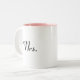 Pink and Blue Mr and Mrs mugs set with cursive handwriting