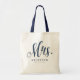 Mrs. script navy blue newlywed bride tote bag