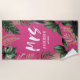 Mrs modern script typography and tropical leaf botanical bachelorette, bridal shower wedding gift. With space for name and date. Modern trendy bright fuchsia pink girly colour.
