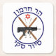 While not commonly known, Israel has a ski resort in the far north, on Mt. Hermon in the Golan.  As it is just a few kilometres to the ceasefire line with Syria retrieving injured skiers is not the most serious problem that may arise.  This is a gallows humour logo for the resort's ski patrol.  Depicts crossed skis, an Israeli Tavor rifle, and  a Magen David Adom (Red Star of David), the symbol of Israel's national emergency medical service, comparable to the Red Cross. The Hebrew text on top reads "Har Chermon" (Mt. Hermon).  The text on the bottom reads "Siyur Ski" (ski patrol).