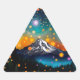 Stunning painting of Mount Rainier in Washington state with a swirly, bright evening sky and fireflies. Original digital painting, no AI used.