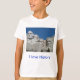 The t-shirt feels and looks great quality, a good thick cotton. It will be a little big for my son, but that means he will be able to wear it and not out grow it too soon. The print was as described on the order when personalised. True size, shape and colour T-shirt- thanks.