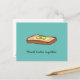 This adorable postcard features two sweet pats of butter smothered over a slice of toast. Use this card to express how much you appreciate someone you love in your life. You can also send it to encourage teammates or a special couple you think are great together. Send it as a postcard, or slip it inside an envelope to use it as a cute note card.