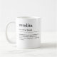 This minimalist ceramic mug features a dictionary style definition of the japanese term “Mudita” in black and white typography and clean and simple design. The japanese word mudita has no equivalent in the English language and refers to the sincere and wholehearted joy experienced in taking pleasure in the success, happiness, or well-being of others. This mudita word definition coffee mug makes a great gift for yoga lovers, spiritual seekers friends of mindful living and meditation, as well as any Japan lovers or dictionary lovers of that like to expand their vocabulary.