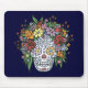 Pretty Day of the Dead sugar skull with flower hair and patterned face.
