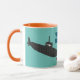 Video Game Submariner Mug with the words: Ready for Sea, is also ready for the video game sub commander, or as a gift for the submarine commander you know. The outside of the mug features a bright white, except for the artwork, and the rim & handle are vividly glazed in rich colours that you can choose. Match or complement the colour of your existing dinnerware set, or gift your friend a mug in his or her favourite colour. Mug available in two sizes, 11-ounce or 15-ounce. The 11-ounce measures 3.2” D x 3.8” H, and the 15-ounce mug measures 3.4” D x 4.5” H and is microwave and dishwasher safe, made of strong, ceramic construction, meets FDA requirements for food and beverage safety, and made in the USA.