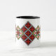 This Ukrainian embroidery look is full of diamond geometrics in vibrant red punch and black fill that makes it truly an elegant way to drink a beverage.
