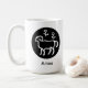 Aries - Signs of the Zodiac - March 21st to April 20th. Graphic depiction of a ram and trees in a black circle.