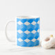Blocks in three dimensions are replicated on a light blue background that closely matches the rim and handle of the cup. Customise/edit the background colour to have block colours coordinate with the colour of rim/handle chosen. ***Part of coordinated set - BKM1j.
