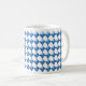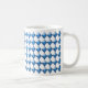 Blue diamond shapes with 3D look. Net of diamonds covers the mug. Multiple shapes are placed with top and bottom points touching, as well as right and left side points.