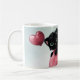 The print on the mug portrays a very tender black kitten with languid eyes immersed in hearts and suspended on a pink balloon. Let yourself be carried away by his tenderness and his loving gaze!