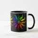 Colour wheels. Three images are repeated around the mug, against a black background. Standard colours for a colour wheel are depicted as stylised leaves gathered by the stems at the centre. Great mug for the visual artist ***Part of coordinated set - BKM2c.