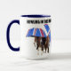 Mug 2 Basset Hounds with England Flag umbrellas Slogan Howling In The Rain