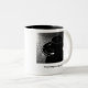 Two tone mug, with black and white cup of coffee, and the sentence "Nice beginnings are forever".