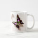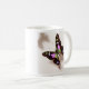 Very colourful Butterfly on a white background with shadows. The Butterfly is black with hot pink, green and white mixed in.
