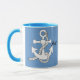 Ship's anchor in white, with rope wound around it. Two images sit either side of the ship name to be Personalised. A perfect gift for the sailor in your life. Customise by changing background colour. ***Part of coordinated set - BKM1d.