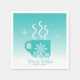 This beautiful Christmas paper napkin features a steaming mug of hot chocolate (or maybe tea or coffee)in turquoise decorated with a single white snowflake. Background is a gradient of turquoise to white sprinkled with tiny snowflakes and a lower border of snow. Add your name(s) using the provided template. Search ID595 to see coordinating products in the Christmas design set.