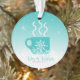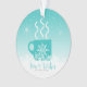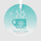 A beautiful acrylic ornament design for Christmas features a steaming mug of hot chocolate (or maybe tea or coffee) in dark turquoise decorated with a single white snowflake. Background is a gradient of turquoise to white sprinkled with tiny snowflakes and a lower border of snow. Add your name(s) to personalise using the provided template. Search ID595 to see coordinating products in the Christmas design set.