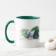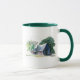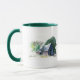 Rustic scene of barn among the trees shows on two sides of mug. Print of original watercolor by John A. Muir.