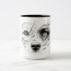 Mug with dog and human face in black and white