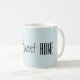 Light blue grey background with black handwritten lettering quote reading "Home Sweet Home" | Coffee Mug. Look for this and others words and quotes from Farmhouse Living.