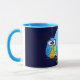 Mug with a vector illustration, showing three cute, colourful owls. This product can be customised by adding text.