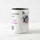 This mug shows a beautiful and aristocratic, yet critically looking cat with elegant white fur and royal-looking blue eyes, who is probably viewing her owner with skepticism.